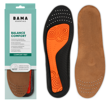 Vložka BAMA-Balance comfort poskytuje citelné zlepšení komfortu, podpory a tlumení pro nohy. Anatomicky tvarovaná stélka, klenutí pro chodidlo a podpora střední části nohy zlepšují držení a stabilitu v botě. Příjemný a vlhkost pohlcující velurový potah a perforace umožňují odvod vzduchu a vlhkosti. Speciální systém vzduchových komor umožňuje měkký nášlap, čímž se snižuje bolest v citllivých oblastech paty a bříška pod prsty. Dermatologicky testováno.